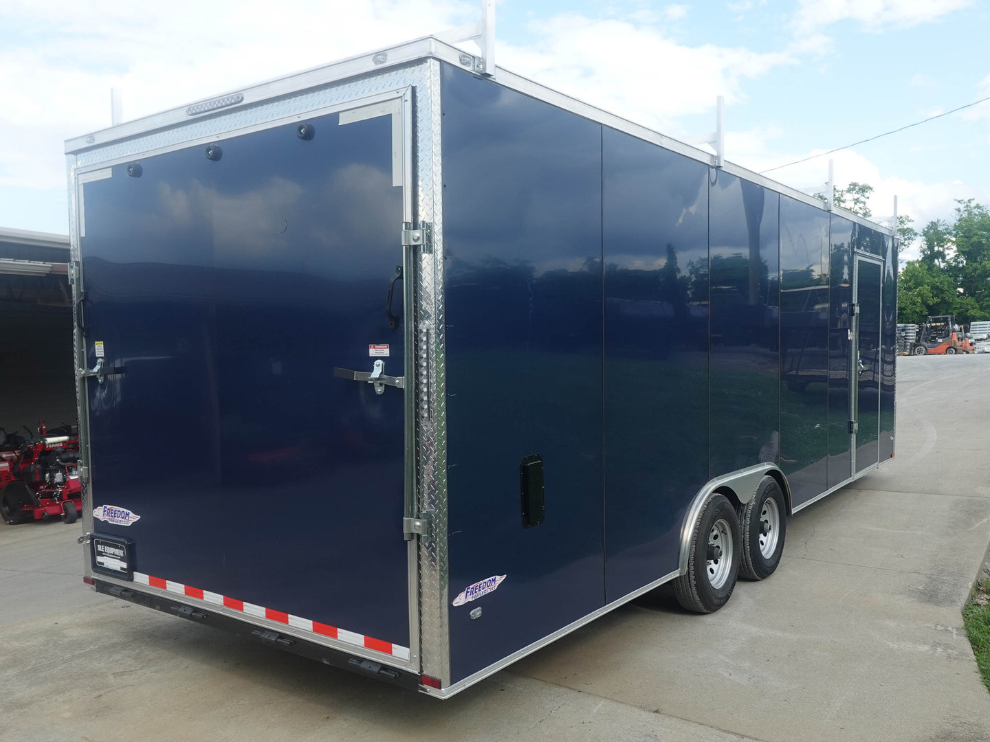 8.5×24 Blue V-Nose Slant Top Enclosed Trailer (2) 5200lb Axles Ladder Racks